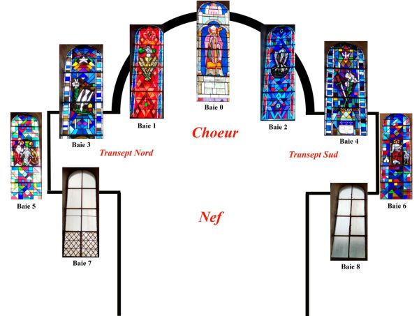 Les vitraux « modernes » seront restaurés et repositionnés dans les transepts Nord et Sud avec les autres vitraux de la même époque (années 1950).